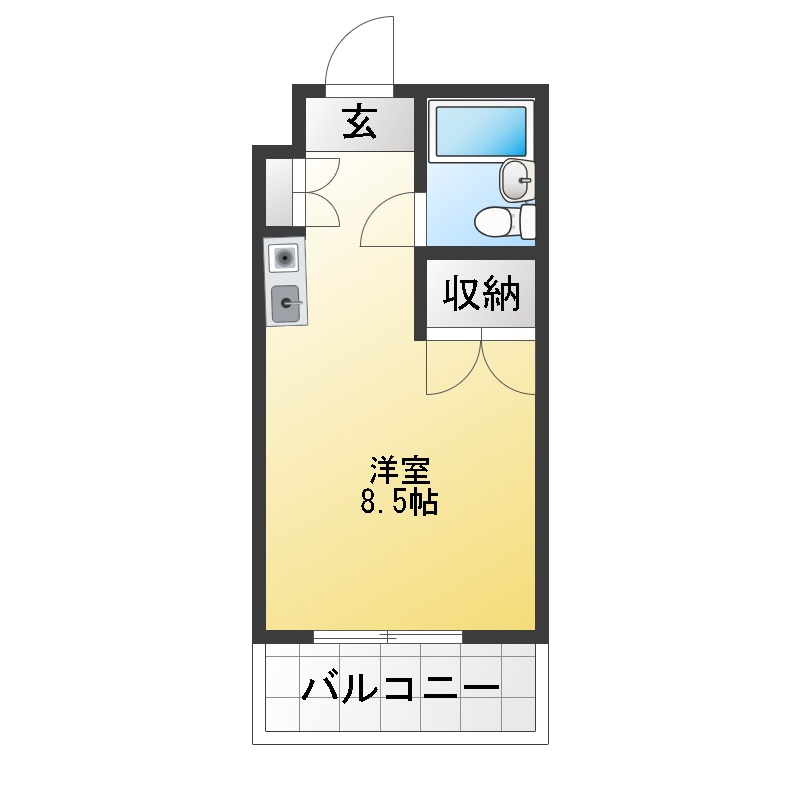 | 部屋設備 | ガス給湯 / 浴室給湯あり / TV付モニターホン / 下駄箱 / ガスコンロ / エアコン / フローリング / 照明器具 / ベランダ / バルコニー / 洋式トイレ / シャワー / 室外洗濯機置場 / 保証人不要 / クロゼット |