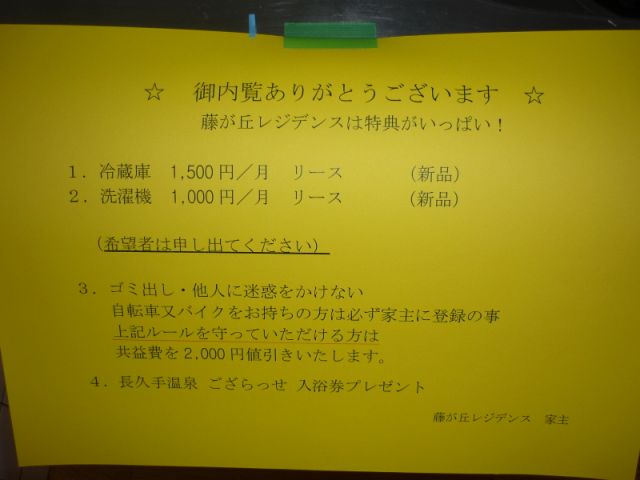 | 一時 | 防災セット:14,400円/ファイテック消火剤:4,800円/鍵交換料:16,500円/ハウスクリーニング代 退去時:38,500円/エアコンクリーニング代 退去時:16,500円 |