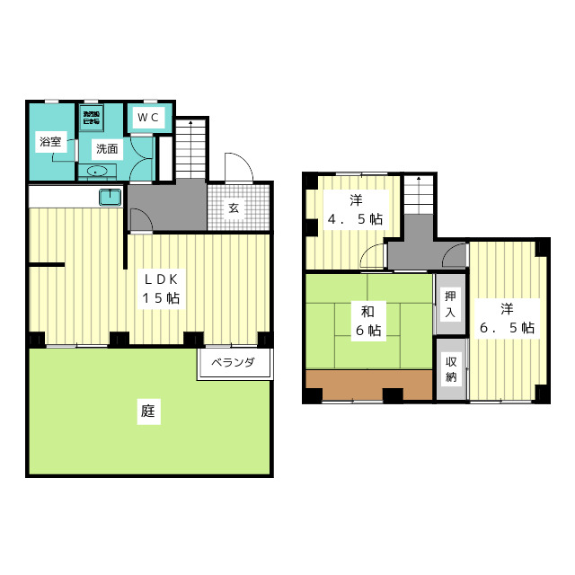 | 部屋設備 | ガス給湯 / 浴室給湯あり / キッチン給湯あり / 洗面所給湯あり / インターホン / 下駄箱 / フローリング / カーペット / ベランダ / 庭 / 洋式トイレ / シャワー / 洗面化粧台 / 室内洗濯機置場 / バストイレ別 / コンロ(コンロ(3口)) / 押入 / 洗面所独立 / メゾネット / システムキッチン |