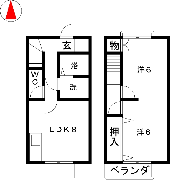 | 構造 | 木造 | 方位 | 南東 | 階数/総階数 | 2階/2階建て |