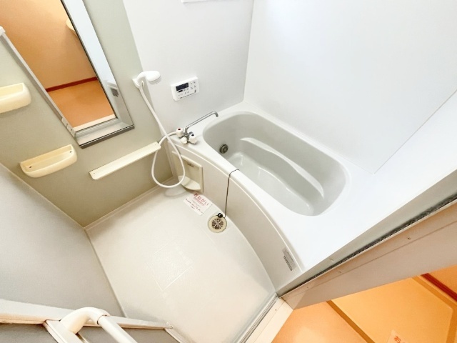 エアコン、追い炊き機能付き。収納スペースが充実しています。