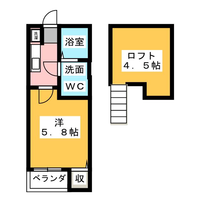 | 部屋設備 | ガス給湯 / 浴室給湯あり / キッチン給湯あり / 洗面所給湯あり / TV付モニターホン / インターホン / 下駄箱 / ガスコンロ / エアコン / フローリング / ロフト / ベランダ / 洋式トイレ / シャワー / 室内洗濯機置場 / バストイレ別 |