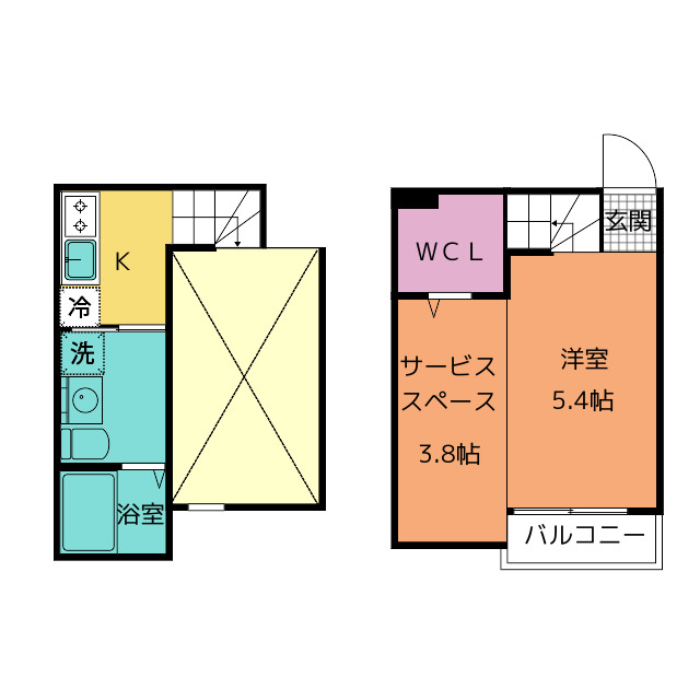 独立したキッチン。メゾネットタイプの1Kです。アンダーロフトでお洒落な内装。嬉しいネット無料!