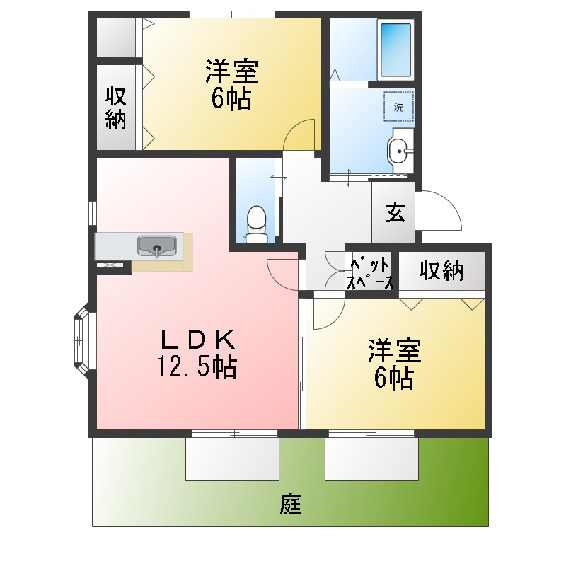 | 部屋設備 | ガス給湯 / 浴室給湯あり / キッチン給湯あり / 洗面所給湯あり / TV付モニターホン / 下駄箱 / 庭 / 洋式トイレ / シャワー / 洗面化粧台 / 室内洗濯機置場 / バストイレ別 / 保証人不要 / 2人入居 / 洗面所独立 / 雨戸 / カウンターキッチン / オンライン内見 / オンライン接客 / IT重説 |