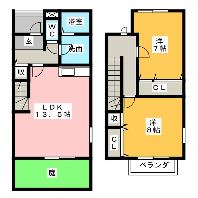 | 部屋設備 | ガス給湯 / 浴室給湯あり / キッチン給湯あり / 洗面所給湯あり / TV付モニターホン / 下駄箱 / ガスコンロ(コンロ(2口)) / エアコン / 電話機設置可 / フローリング / ベランダ / バルコニー / 庭 / 洋式トイレ / シャワー / 浴室乾燥機 / 洗髪洗面化粧台 / 追焚き / 室内洗濯機置場 / バストイレ別 / メゾネット / システムキッチン / IT重説 |