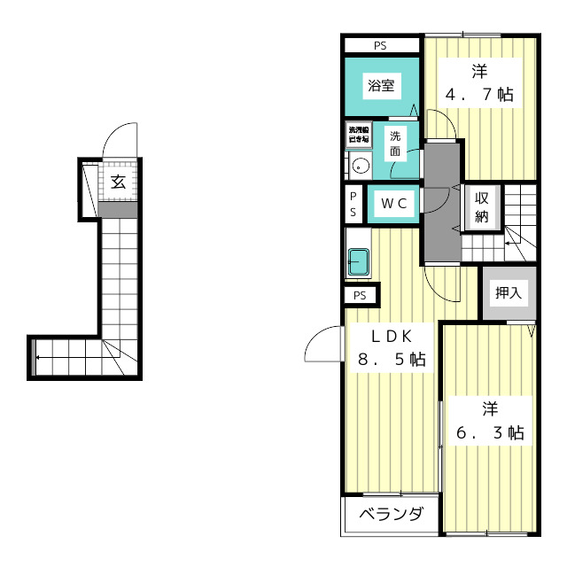 | 構造 | 木造 | 方位 | 南 | 階数/総階数 | 2階/2階建て |