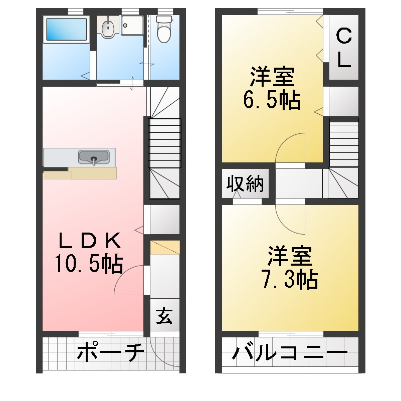刈谷市駅徒歩6分、メゾネット2LDK、カウンターキッチン!光インターネット使い放題、追い焚、TVモニターホン、都市ガス! BS、CSアンテナ、専用庭、床下収納、設備も充実、使いやすい間取り。 刈谷駅も自転車圏内、通勤便利な駅近好立地!※短期解約違約金あり。