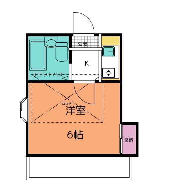 | 部屋設備 | ガス給湯 / 浴室給湯あり / キッチン給湯あり / TV付モニターホン / 下駄箱 / 電気コンロ / エアコン / ロフト / バルコニー / 洋式トイレ / シャワー / 室外洗濯機置場 / 押入 / ミニキッチン / オンライン内見 / オンライン接客 / IT重説 / 家具家電設置可 |