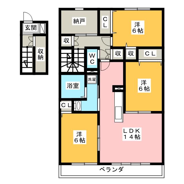綺麗な内装で日当たり良好です。周辺にスーパーあり便利。広々とした3LDKに納戸もあります。ファミリーさんや荷物の多い方におすすめです。