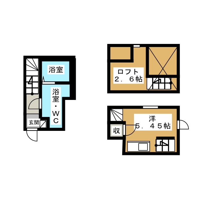 | 部屋設備 | ガス給湯 / 浴室給湯あり / キッチン給湯あり / TV付モニターホン / 下駄箱 / ガスコンロ(コンロ(2口)) / エアコン / ロフト / 洋式トイレ / トイレ電源有 / シャワー / 洗面化粧台 / 追焚き / 室内洗濯機置場 / バストイレ別 / シャワー付トイレ / メゾネット |