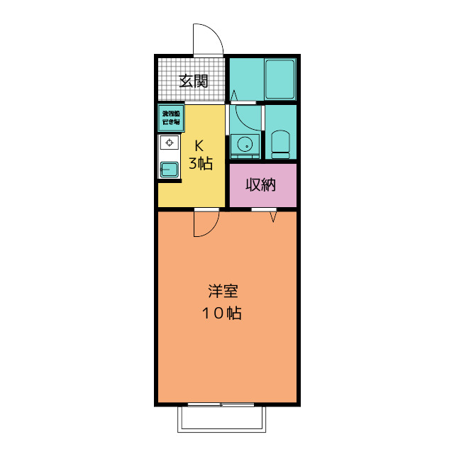 広い収納、バストイレ別、独立洗面台、もちろんエアコン付です。南向きの角部屋で日当り良好の広々1K