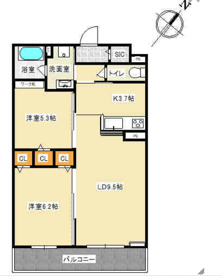 2LDK 54.65m2 |