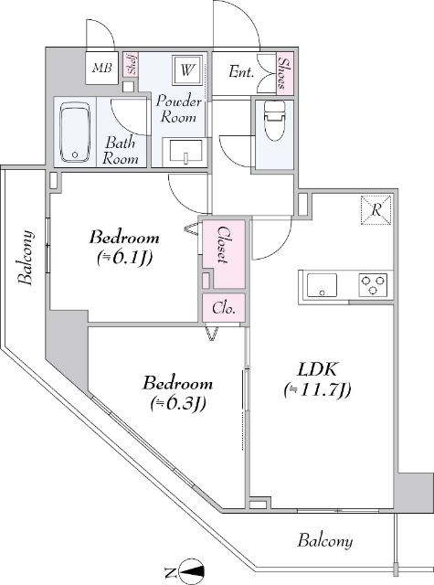 2LDK 55.65m2 |