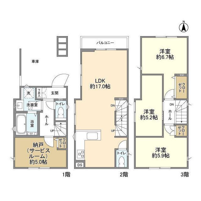 | 構造 | 木造 | 方位 | 北 | 階数/総階数 | 3階建て |