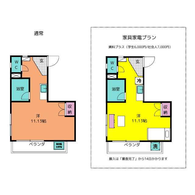| このお部屋は家賃+7,000円(学生+6,000)で、新品の家具・家電の設置が可能です。 詳 細 | |||||