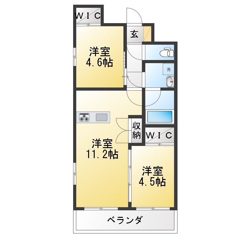 | 部屋設備 | TV付モニターホン / インターホン / 下駄箱 / エアコン / フローリング / ウォークインクロゼット / ベランダ / 浴室乾燥機 / 洗髪洗面化粧台 / 追焚き / 室内洗濯機置場 / バストイレ別 / 角部屋 / コンロ(コンロ(3口)) / シャワー付トイレ / 洗面所独立 / カウンターキッチン / システムキッチン |
