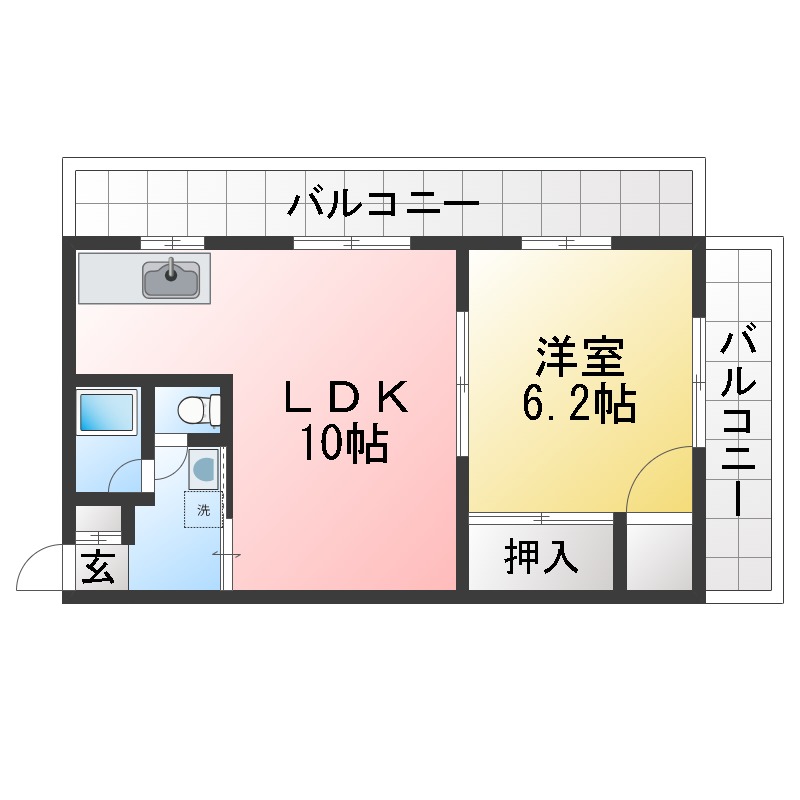 | 部屋設備 | ガス給湯 / 浴室給湯あり / キッチン給湯あり / 洗面所給湯あり / 下駄箱 / エアコン / バルコニー / 洋式トイレ / シャワー / 洗面化粧台 / 室内洗濯機置場 / バストイレ別 / シャワー付トイレ / クロゼット / 洗面所独立 |