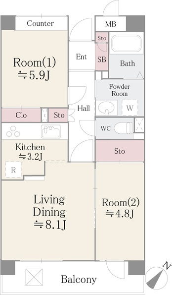 2DK 55.74m2 |