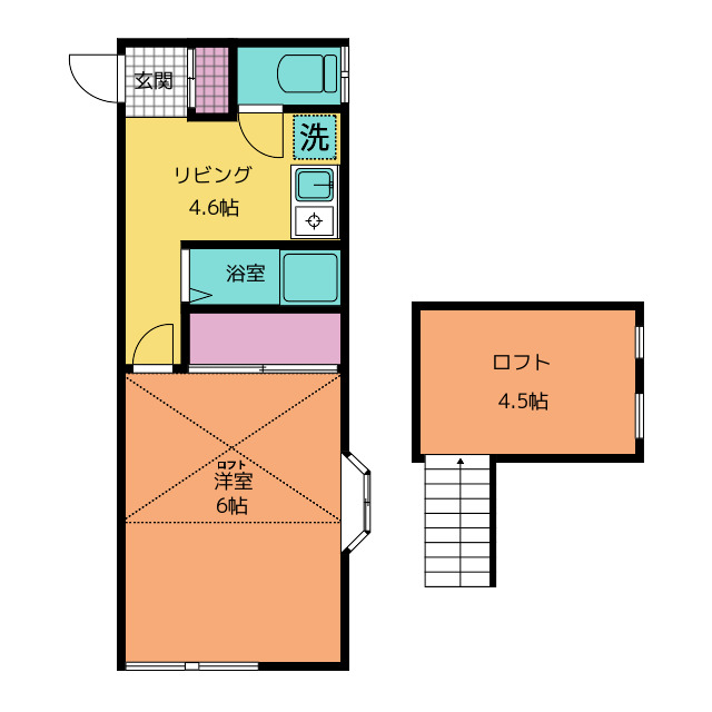 | 部屋設備 | ガス給湯 / 浴室給湯あり / キッチン給湯あり / 洗面所給湯あり / 下駄箱 / ガスコンロ / エアコン / フローリング / ロフト / 洋式トイレ / シャワー / 室内洗濯機置場 / バストイレ別 / 上位階なし / ミニキッチン / オンライン内見 / オンライン接客 / IT重説 |