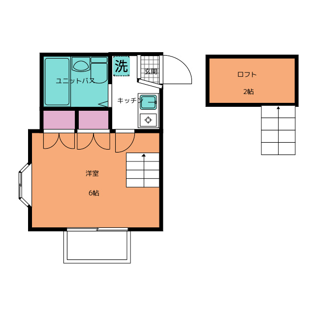 | 部屋設備 | ガス給湯 / 浴室給湯あり / キッチン給湯あり / 電気コンロ / 冷蔵庫 / エアコン / ロフト / ベランダ / 洋式トイレ / シャワー / 室内洗濯機置場 / ミニキッチン / オンライン内見 / オンライン接客 / IT重説 |