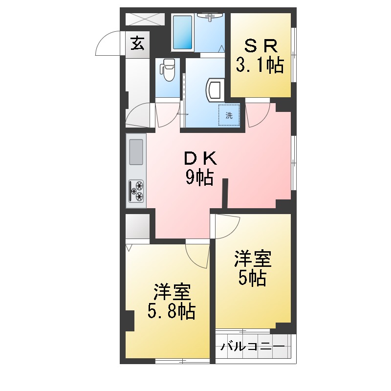 分譲タイプ2SDKの間取りエアコン2台、浴室乾燥機、エレベーターなど設備充実