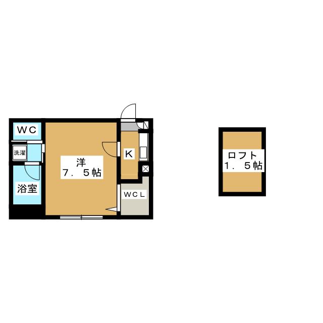 ロフト付き1Kタイプ。バストイレ別。広々とした収納が魅力です室内洗濯機置き場、浴室乾燥機、ウォシュレット等設備充実。