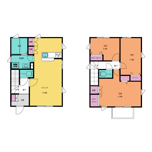 | 構造 | 木造(2X4工法) | 方位 | 南 | 階数/総階数 | 2階建て |