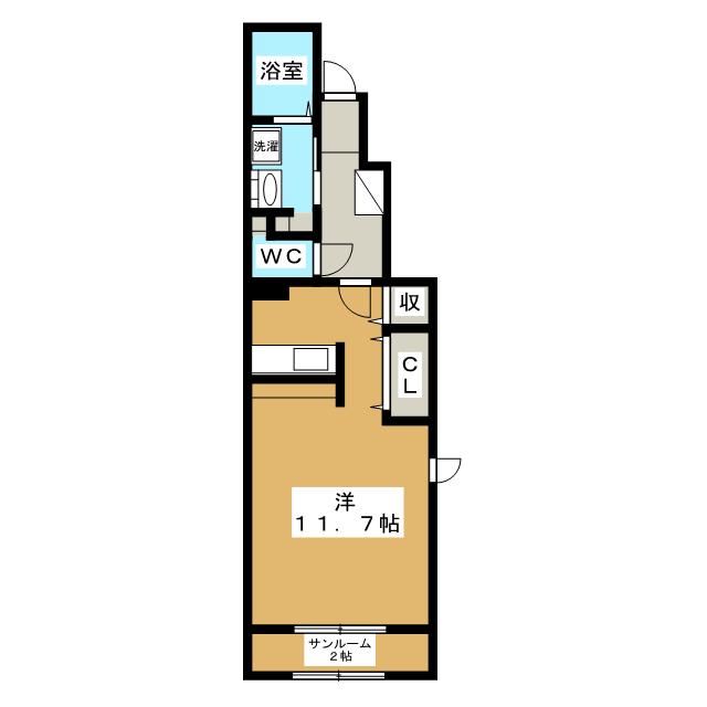 1階でも女性に人気のサンルーム付き。広さのある1R。ネット無料、追い焚き、浴室乾燥機など設備充実。