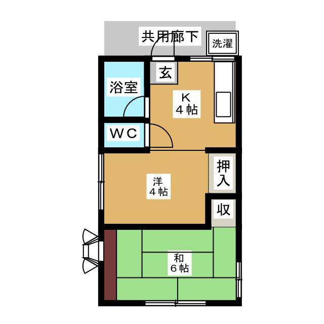 | 部屋設備 | ガス給湯 / 浴室給湯あり / キッチン給湯あり / ガスコンロ(コンロ(2口)) / エアコン / 暖房 / フローリング / バルコニー / 洋式トイレ / シャワー / 室外洗濯機置場 / バストイレ別 / 角部屋 / 2人入居 / 押入 / 収納1間半 / 雨戸 |