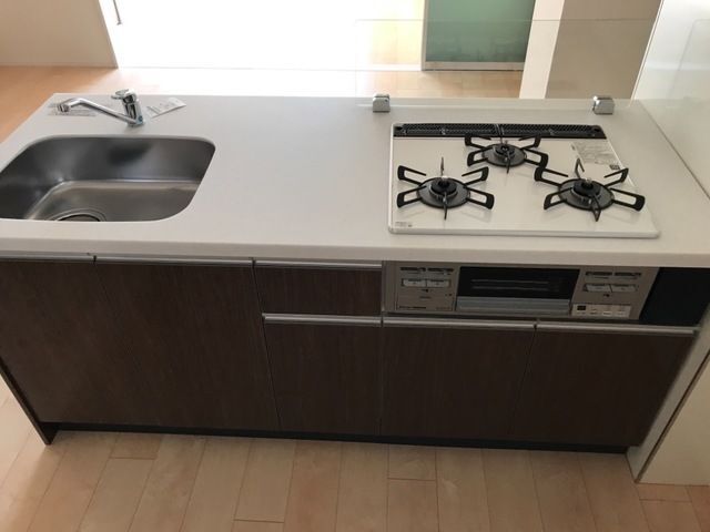 近隣商店街もあり生活施設も充実☆工場エリアでお仕事の方にもお勧め!!自転車駐輪1世帯1台。ペニンシュラタイプのカウンターキッチン、3口ガスコンログリル付です。