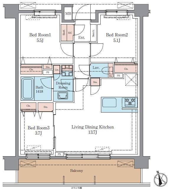 3LDK 61.31m2 |