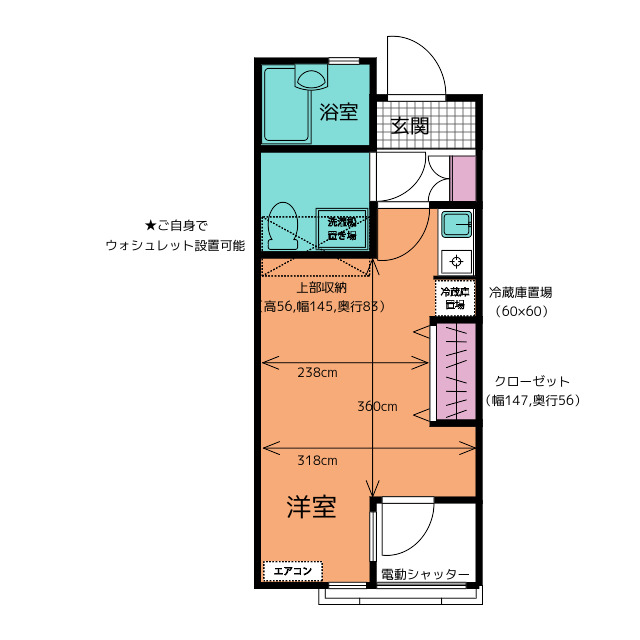 | 部屋設備 | ガス給湯 / 浴室給湯あり / キッチン給湯あり / インターホン / 下駄箱 / ガスコンロ / エアコン / フローリング / ベランダ / 洋式トイレ / シャワー / 室内洗濯機置場 / バストイレ別 / 学生応援企画対象 / 上位階なし / クロゼット / シャッター / ミニキッチン / オンライン内見 / オンライン接客 / IT重説 |