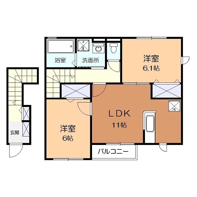 | 構造 | 軽量鉄骨造 | 方位 | 南東 | 階数/総階数 | 2階/2階建て |