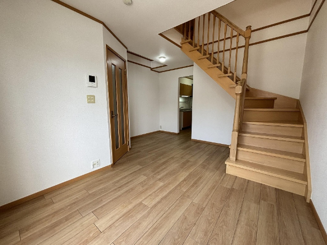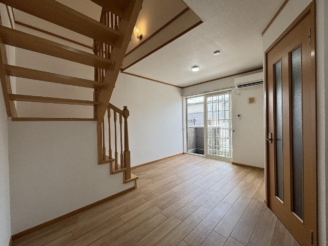 人気の陽だまりの丘のメゾネット賃貸。かわいい外観と内装が素敵な物件。 各居室にエアコン、照明完備です。