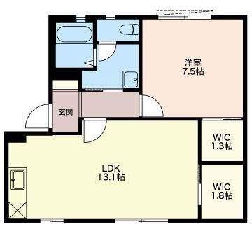 広々リビングの1LDK、ウォークインクローゼットも2ヶ所完備。近隣にはお買い物施設もあって便利な環境です。