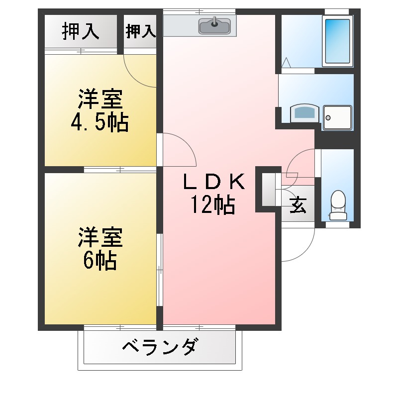 | 環境 | ファミリーマート (440m) / セブンイレブン (790m) / カネスエ (1,200m) / シャトレーゼ (920m) / コメリ (900m) / ひよこ保育園 (370m) | ||||