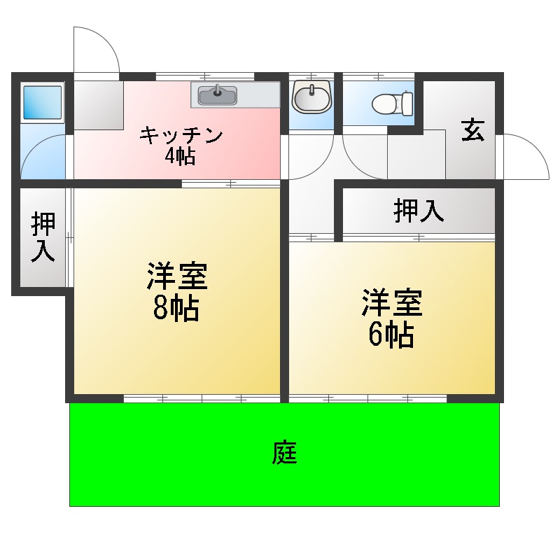 | 部屋設備 | ガス給湯 / 浴室給湯あり / キッチン給湯あり / 洗面所給湯あり / エアコン / 照明器具 / 庭 / シャワー / 室内洗濯機置場 / バストイレ別 / 角部屋 / 上位階なし / 2人入居 / オンライン内見 / オンライン接客 / IT重説 |