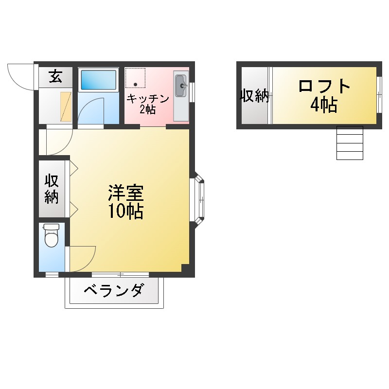 広々10帖の物件。バス・トイレ別でロフトもついています。大容量の収納と収納付きのロフトががあり、荷物が多い方にもおすすめです。※駐車場空き要確認
