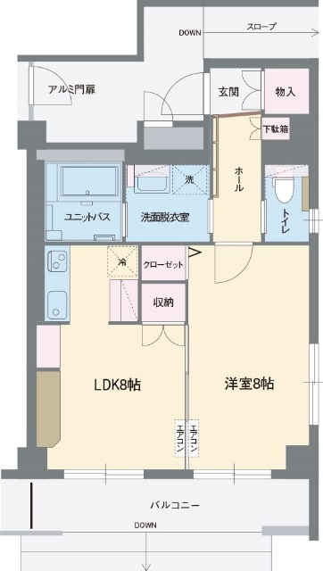 | 部屋設備 | ガス給湯 / 浴室給湯あり / キッチン給湯あり / 洗面所給湯あり / 下駄箱 / エアコン / フローリング / バルコニー / 洋式トイレ / ウォームレット / トイレ電源有 / 室内洗濯機置場 / バストイレ別 / 保証人不要 / 学生応援企画対象 / 2人入居 / クロゼット / オンライン内見 / オンライン接客 / IT重説 |
