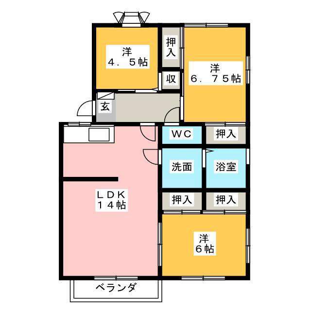 | 環境 | ローソン (360m) / フードマーケットMom (630m) / 100えんハウスレモン (570m) / マクドナルド (520m) / コメダ (510m) / ゆうなのき保育園 (120m) / 市立千代田東小学校 (900m) / 市立東中学校 (2,400m) | ||||