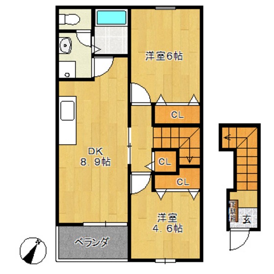 | 構造 | 木造 | 方位 | 南東 | 階数/総階数 | 2階/2階建て |