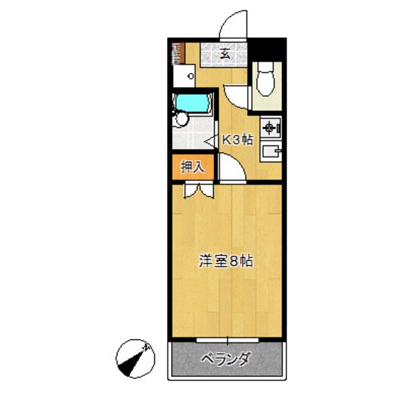 | 部屋設備 | TV付モニターホン / ガスコンロ / エアコン / フローリング / 照明器具 / バルコニー / シャワー / 室内洗濯機置場 / バストイレ別 / 押入 |