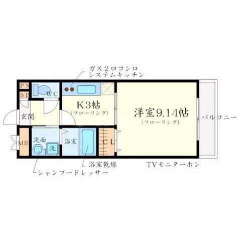 | 部屋設備 | TV付モニターホン / ガスコンロ(コンロ(2口)) / エアコン / フローリング / バルコニー / シャワー / 浴室乾燥機 / 洗髪洗面化粧台 / 室内洗濯機置場 / バストイレ別 / クロゼット / 洗面所独立 / システムキッチン |