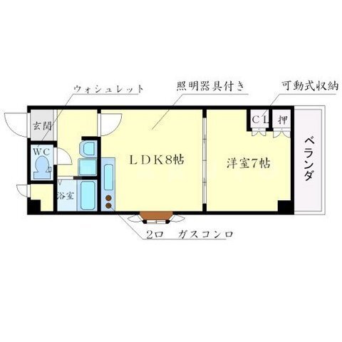 | 部屋設備 | TV付モニターホン / 下駄箱 / ガスコンロ(コンロ(2口)) / エアコン / フローリング / 照明器具 / バルコニー / シャワー / 室内洗濯機置場 / バストイレ別 / 角部屋 / 2人入居 / シャワー付トイレ / クロゼット / 洗面所独立 |