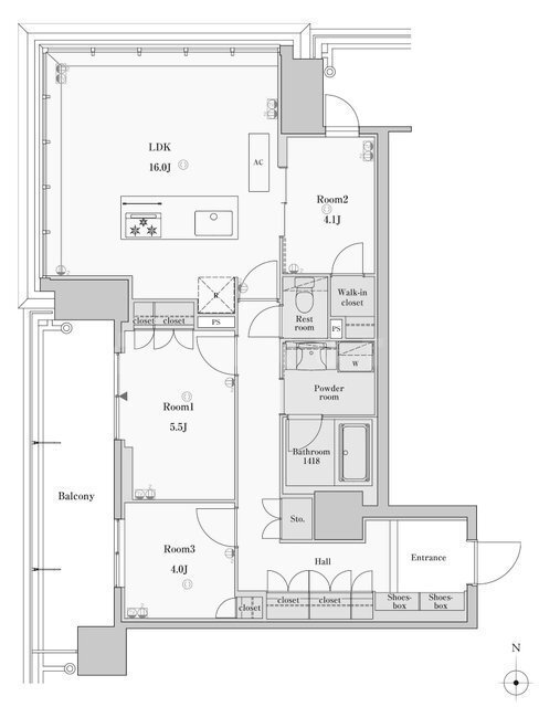 | 部屋設備 | TV付モニターホン / 下駄箱 / ガスコンロ(コンロ(3口)) / エアコン / フローリング / ウォークインクロゼット / バルコニー / シャワー / 浴室乾燥機 / 洗髪洗面化粧台 / 追焚き / 室内洗濯機置場 / バストイレ別 / 角部屋 / 2人入居 / シャワー付トイレ / クロゼット / 洗面所独立 / カウンターキッチン / システムキッチン |