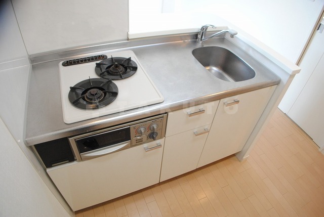 | 部屋設備 | TV付モニターホン / 下駄箱 / ガスコンロ(コンロ(2口)) / エアコン / バルコニー / 浴室乾燥機 / 室内洗濯機置場 / バストイレ別 / 角部屋 / 2人入居 / シャワー付トイレ / クロゼット / 洗面所独立 / カウンターキッチン / システムキッチン |