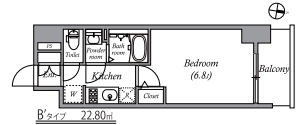 | 部屋設備 | TV付モニターホン / 下駄箱 / ガスコンロ(コンロ(2口)) / エアコン / フローリング / バルコニー / シャワー / 浴室乾燥機 / 洗髪洗面化粧台 / 室内洗濯機置場 / バストイレ別 / シャワー付トイレ / クロゼット / 洗面所独立 / システムキッチン |