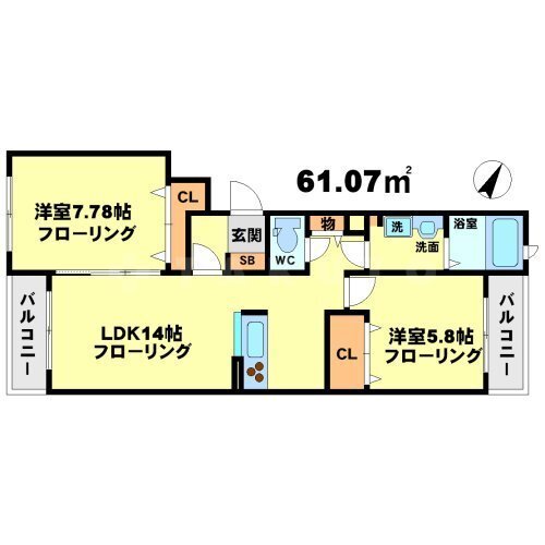 2LDK 61.07m2 |