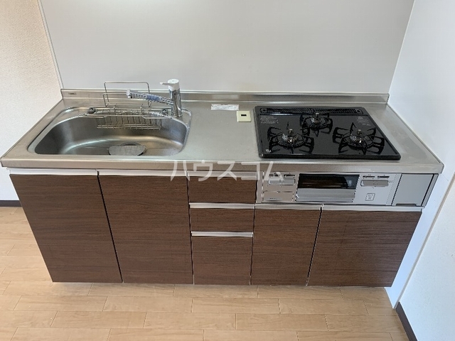 | 部屋設備 | 下駄箱 / ガスコンロ(コンロ(3口)) / フローリング / バルコニー / シャワー / 洗髪洗面化粧台 / 室内洗濯機置場 / バストイレ別 / 角部屋 / 2人入居 / シャワー付トイレ / クロゼット / 洗面所独立 / システムキッチン |