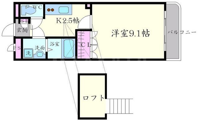 | 部屋設備 | フローリング / ロフト / バルコニー / シャワー / 浴室乾燥機 / 洗髪洗面化粧台 / 追焚き / 室内洗濯機置場 / バストイレ別 / エアコン / ガスコンロ(コンロ(2口)) / 下駄箱 / TV付モニターホン / 角部屋 / シャワー付トイレ / クロゼット / 洗面所独立 / システムキッチン |